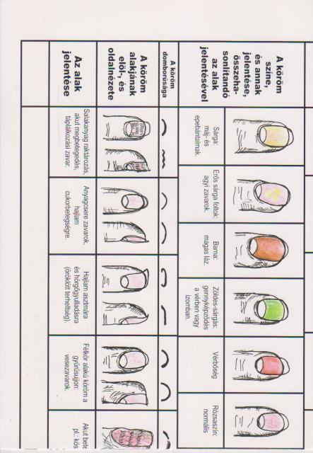 + A/3as méretű táblázat a: A betegségek diagnózisa körömformák, színek és jelek alapján.