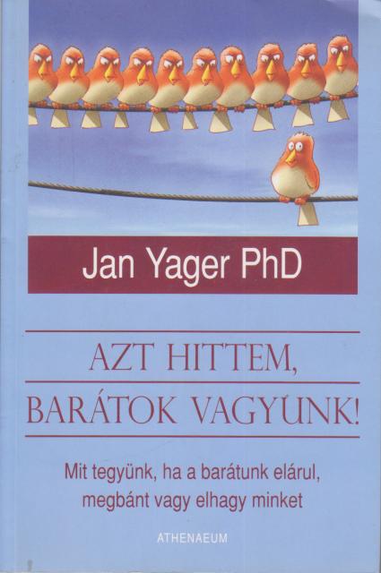 Mindannyiunknak voltak már rosszul végződött barátságai… Elhidegülés, vagy vérlázító árulás – egy ártalmas barátság megkeserítheti az életünket, veszélyeztetheti a munkahelyi sikereket, sőt, még még a szerelmi kapcsolatokba is csúnyán belerondíthat. Dr. Jan Yager, a téma nemzetközileg elismert szakértője bemutatja, mi vezet egy baráti kapcsolat kihűléséhez, s azt is, hogyan menthetjük meg, vagy épp ellenkezőleg, hogyan vethetünk véget egy ártalmas barátságnak. Ebben a jól áttekinthető szerkezetű könyvben rengeteg megtörtént, tanulságos eset és izgalmas rejtvény várja az olvasót, aki megtudhatja, hogyan ismerheti fel a rosszul működő barátságok 21 típusát, hogyan kerülheti el a munkahelyi barátságok legkülönfélébb buktatóit vagy találhatja meg az ideális barátokat.