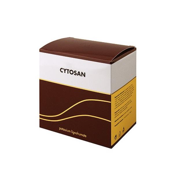 1 Cytosan kapszula 43 mg káliumot tartalmaz, tartalmaz továbbá tőzeget amely barnaszénben harmadkori növényekből keletkezik.A tőzeg megköti a nehézfémeket (ólom, kadmium) és ezek kiürítését nagymértékben segíti.