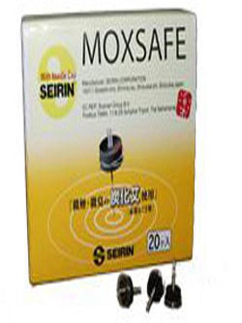 A Moxsafe rozsdamentes acélból készült tartóból (mely felhelyezhető az acél akupunktúrás tű végére) és egy szenesített fekete üröm gyűrűből áll.